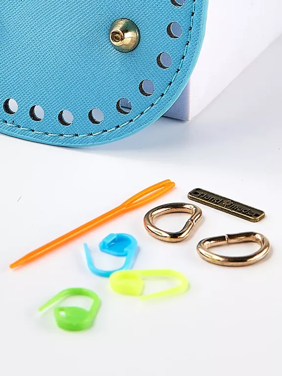 Можно дополнить набором для вязания: игла пластиковая, 3 маркера , 1 бирка "hand made" золото, 2 полукольца золото.